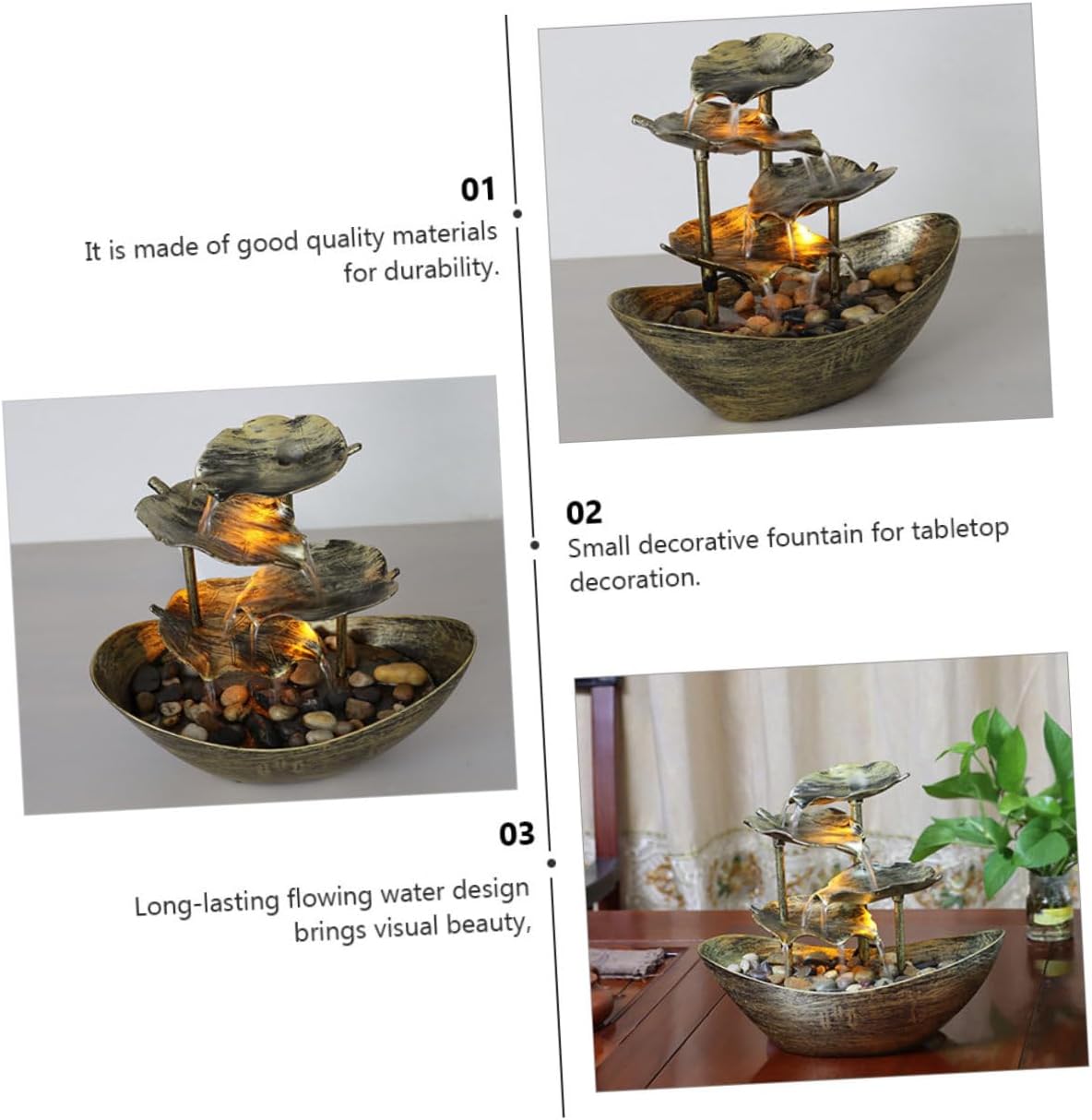 Package Include 1 x tabletop adornment with USB plug Characteristics -motor power: 120 L/h Desktop Decor -Product Info:Lotus leaf ingot fountain -Product power supply: DC 5 (not included) Desktop Ornament -Note: The motor need to be submerged by water Water Running Ornament -Size:28.00X25.00X15.00cm/11.00X9.82X5.89in -Color:Golden -Material:Plastic -Flowing water landscape, a combination of various elements, realistic display, like a landscape painting Office Ornament. -It is beautiful, suitable for table decoration Running Water Ornament. - workmanship, unique shape, with a very good decorative effect Running Water Adornment. -Small waterfall fountain, lightweight construction, easy to use Light Adornment. -Selected material, which is not easy to deform or break.Goods InformationWaterfall Ornament The material enjoys the high durability, not easy to deform or break.Light Adornment It is made of , which can withstand the lasting use.Running Water Ornament Are you looking for a delicate ornament for your desktop? Do you want an ornament which is creative and unique? If your answer is yes, you should come and take at this product