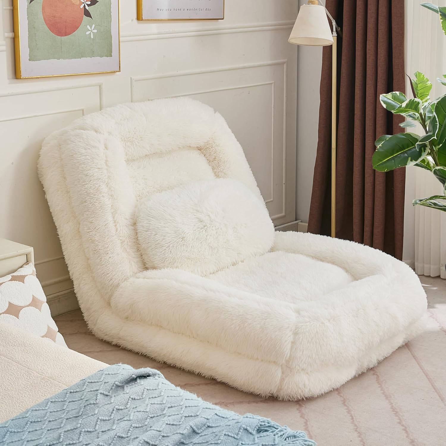 This versatile floor sofa easily reclines from 90° to 180° with five secure locking positions, letting you switch smoothly from sitting to lounging to fully flat sleeping for personalized comfort. Filled with plush, high-resilience cotton and elastic sponge, it offers thick, fluffy support that quickly regains its shape without sagging. The convertible design transitions from a cozy floor chair to a spacious lounging bed (69" × 35" × 16.5"), making it ideal for adults, kids, and even pets in living rooms, bedrooms, dorms, or playrooms. Delivered vacuum-packed for easy setup, simply insert the frame, allow it to fully expand, and enjoy a soft, supportive, space-saving lounging solution for everyday relaxation.
