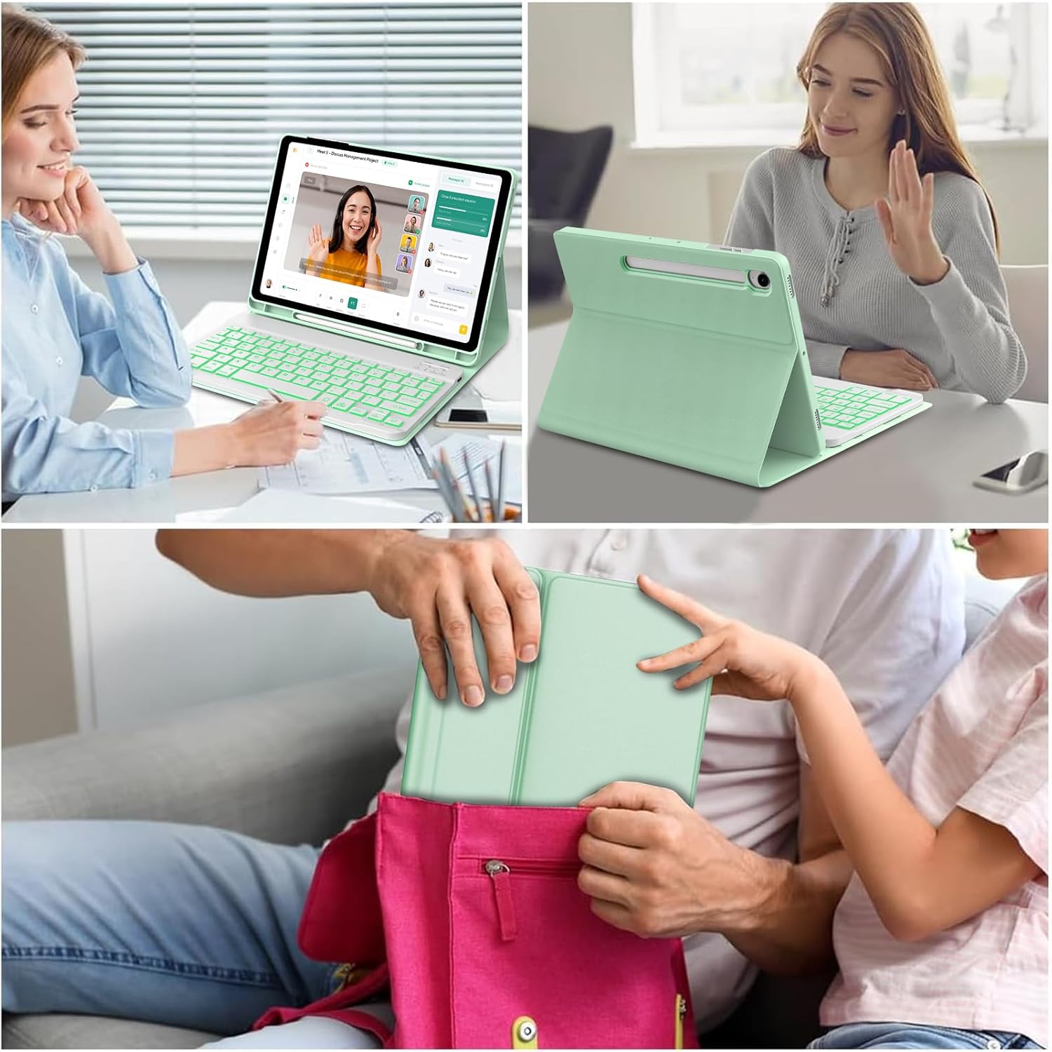 • 🔋【COMPATIBILITY】Premium protective keyboard case specially designed backlit keyboard cover for Samsung Galaxy Tab S10 FE 5G 10.9 inch (Model SM-X520/X526B/X528U) 2025, SAMSUNG Galaxy Tab S9 Wi-Fi 11"/ S9 FE 10.9" (Wi-Fi/5G) 2023 Release Android Tablet (MODEL: SM-X710/ X716/ X718/ X510/X516B/ X518U). 📌 NOT FIT Galaxy Tab S9 Plus/ S9 FE Plus 12.4" 2023 (SM-X810), Tab S9 Ultra 14.6" 2023 (SM-X910) or other tablet models. Please click "Settings-System-About Tablet-Model" to check your tablet model number before purchase.