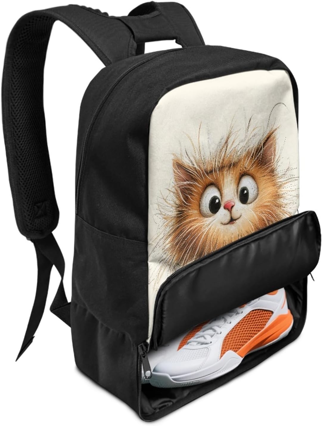 Transform your athletic gear transport with this versatile sports backpack featuring dedicated compartments for all your essentials. The innovative design includes a specialized ball holder that can accommodate basketballs, soccer balls, or other sports equipment, plus a separate shoe compartment to keep footwear isolated. Measuring 18.5 x 12.6 x 7.3 inches, this backpack offers ample space while maintaining a sleek profile. The waterproof construction protects your gear from the elements, while the padded shoulder straps ensure comfortable carrying. Available in black with three striking graphic print options - a dynamic sports ball galaxy design, an electrifying soccer player illustration, or a serene cherry blossom cat motif. The main compartment provides plenty of room for clothes, towels, and other accessories, making it perfect for gym sessions, team practices, or casual sports meetups. The practical organization system helps keep your gear sorted and easily accessible, whether you're heading to the court, field, or gym.
