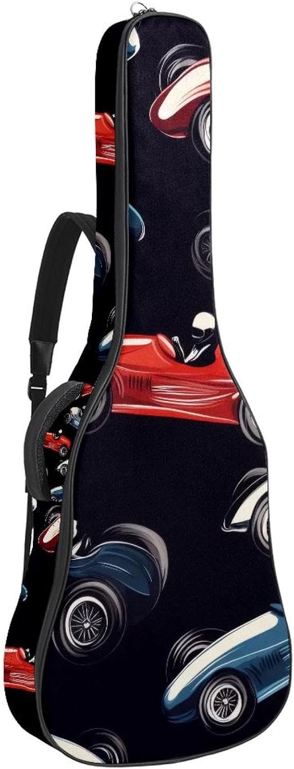 Give your valuable guitar the premium protection it deserves. Our Cute Printed Guitar Gig Bag is engineered for the modern musician who demands both security and convenience. Whether you're heading to a gig, a practice session, or on a short trip, this bag ensures your instrument arrives in perfect condition, ready to play.Constructed from durable, waterproof Oxford cloth, this bag stands up to the elements and the test of time. The interior is a sanctuary for your guitar, featuring ultra-thick padded sidewalls and a soft, anti-scratch lining that cradles your instrument, preventing scratches and damage. The heavy-duty rubber base acts as a shield against everyday bumps and allows for stable placement on any surface.Organization is effortless with multiple dedicated compartments. Two main storage pockets keep all your essential accessories—like a foldable music stand, tuner, picks, cables, and extra strings—neatly sorted and easily accessible. Never fumble for your tablet or sheet music again; the specially designed back pocket keeps them safe and separate.For a perfect, secure fit, the adjustable neck support and internal Velcro strap ensure your guitar does not shift around inside the bag, providing peace of mind with every carry.Care Instructions: To preserve the quality and appearance of your gig bag, please do not machine wash. Simply wipe clean with a damp cloth to remove any dirt or stains.