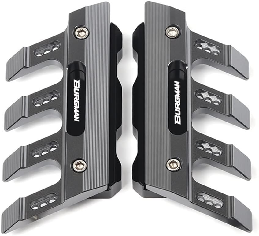 ★ Please be sure to check the compatible model and year when purchasing.★ Detailed specifications and instructions for the product are not included.If you are worried about installation,please leave it to a professional for installation.For Suzuki Burgman 650 125 150 200 250 400 Motorcycle Fall Side Guard Front Fork Protector Front Fender Protection Block Side Guard CNC Aluminum <;; Quantity: 1 pair (left and right )(Includes mounting bolts)<;; Colour:grey , Black , Gold , Red , Blue , Green , orange. <;; Material: with 6061-T6 aluminum by CNC, with smooth appearance and full sense of lines! the color is full and does not fade, and the appearance of the motorcycle is improved. ★ Fitment for:For Suzuki Burgman 650 125 150 200 250 400★ Product Features: Stylish appearance, strong material, but also to protect the front fender to avoid some damage★Tip: Simple and non-destructive installationFree installation tools, put them in directly,using the tool to tighten the screws to complete,1 bolts or 2 boltson can be mount .Please confirm that there are 1 or 2 bolts on each side of the front fender of the motorcycle, which can be installed, but cannot be installed without bolts.Due to lighting effects and screen, the color tone in the photo may be slightly different from the actual product, the allowable measurement error is 1-3 mm.