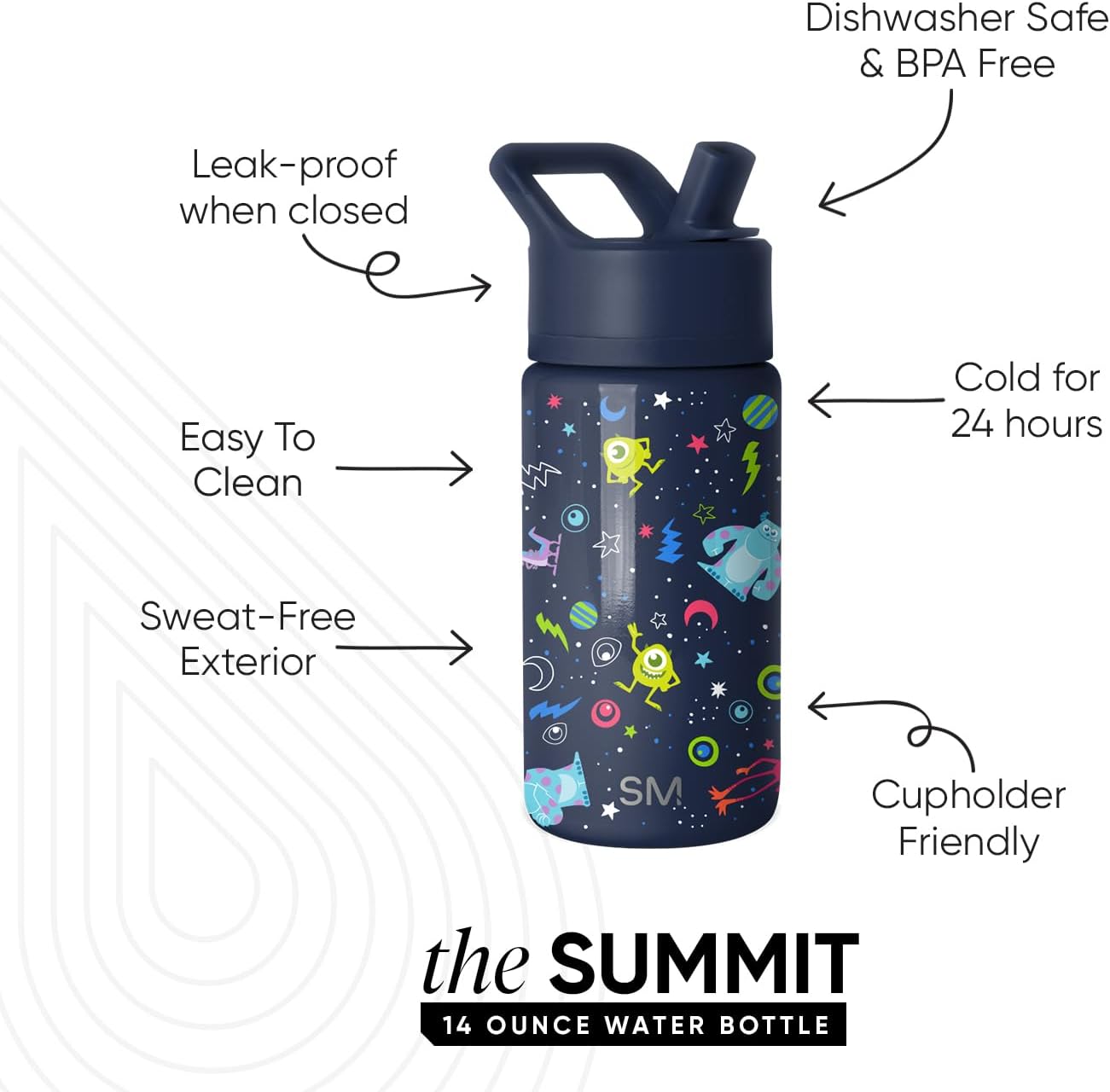 The Simple Modern Summit with Straw Lid for Kids is the perfect vessel for toddlers and youngsters. This dishwasher safe vessel comes with a leak proof straw lid. Double walled, vacuum insulated 18/8 stainless steel keeps your child's water or milk cold for hours.