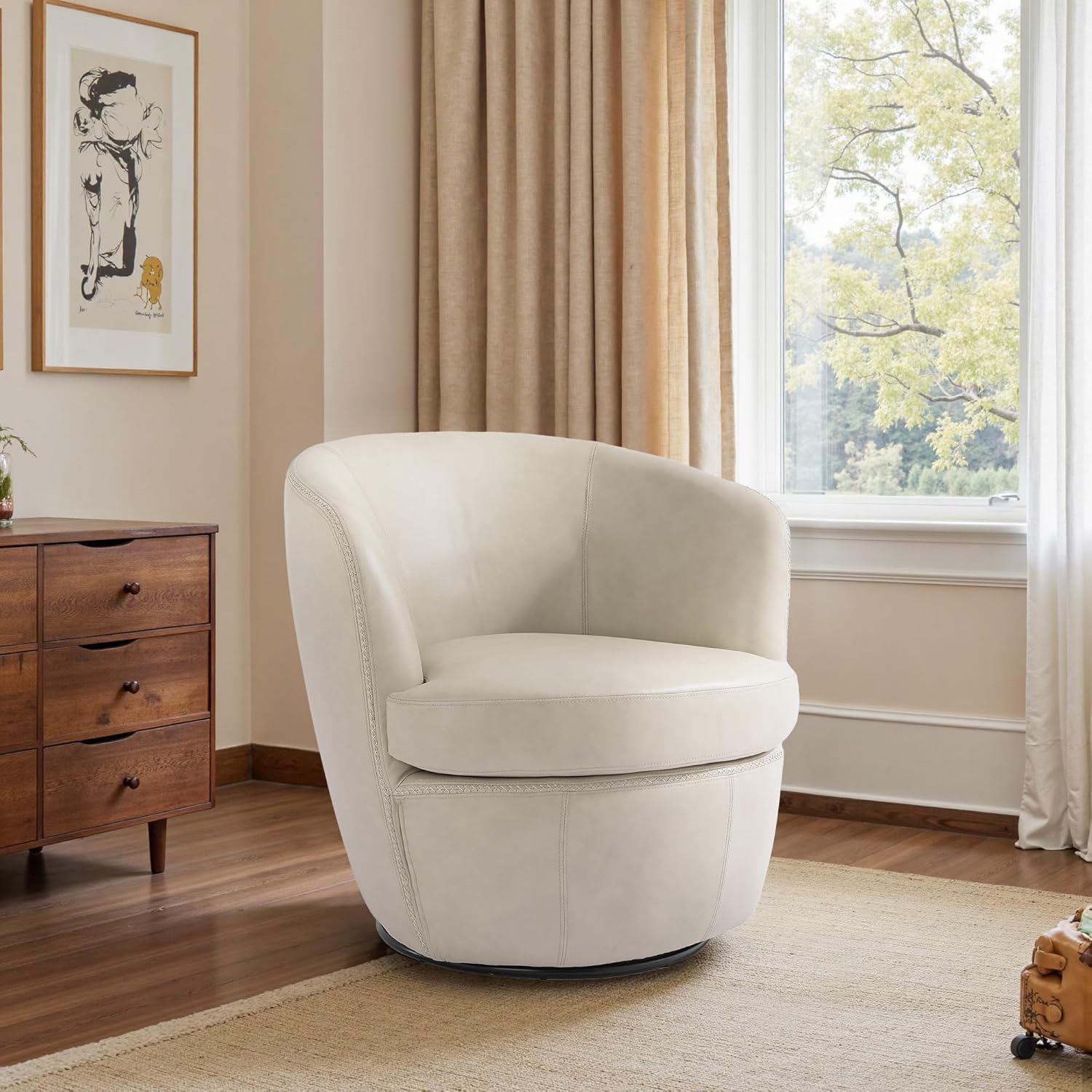 Swivel Barrel Accent Chair, Modern Round Faux Leather Arm Chair for Living Room, Bedroom, Comfy Club Reading Chairs for Adults (Navy Blue, Set of 1)