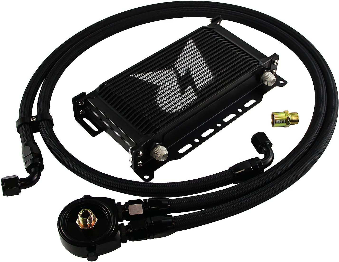 Application: Universal (The fitler thread size must be 3/4*16 or M20*1.5 Description: Powder-Coated and Oxidized for Durability and Protection Excellent for Modified Street Vehicles, which are Driven Hardly with Minimal Track Use Oil Cooler Test Pressure:12bar Helps Reducing Coolant Temperature and Extends Engine Life Inlet: 10AN (7/8") Outlet: 10AN (7/8") Inlet Outlet Center Distance: 248mm 2 Oil lines with AN10 Nylon/ Steel hose ends (1.4m & 1.6m ) Professional Installer is Highly Recommended (No Instruction Included) The item description was measured by hand, it could have 1-2 inches deviation. Excellent for Modified Street Vehicles, which are Driven Hardly with Minimal Track Use Fan: 1.Brand new radiator cooling fan blade for Universal use 2.Helps Cool down the Radiator for longer life 3.Maximum Fan =2900 RPM 4.Size: 7" 5.Volts: 12 Volts, Maximum AMP DRAW 4.5/ 24 Volts, Maximum AMP DRAW 2.8 No instructions included, Professional installation is highly recommended Include: Same as the picture