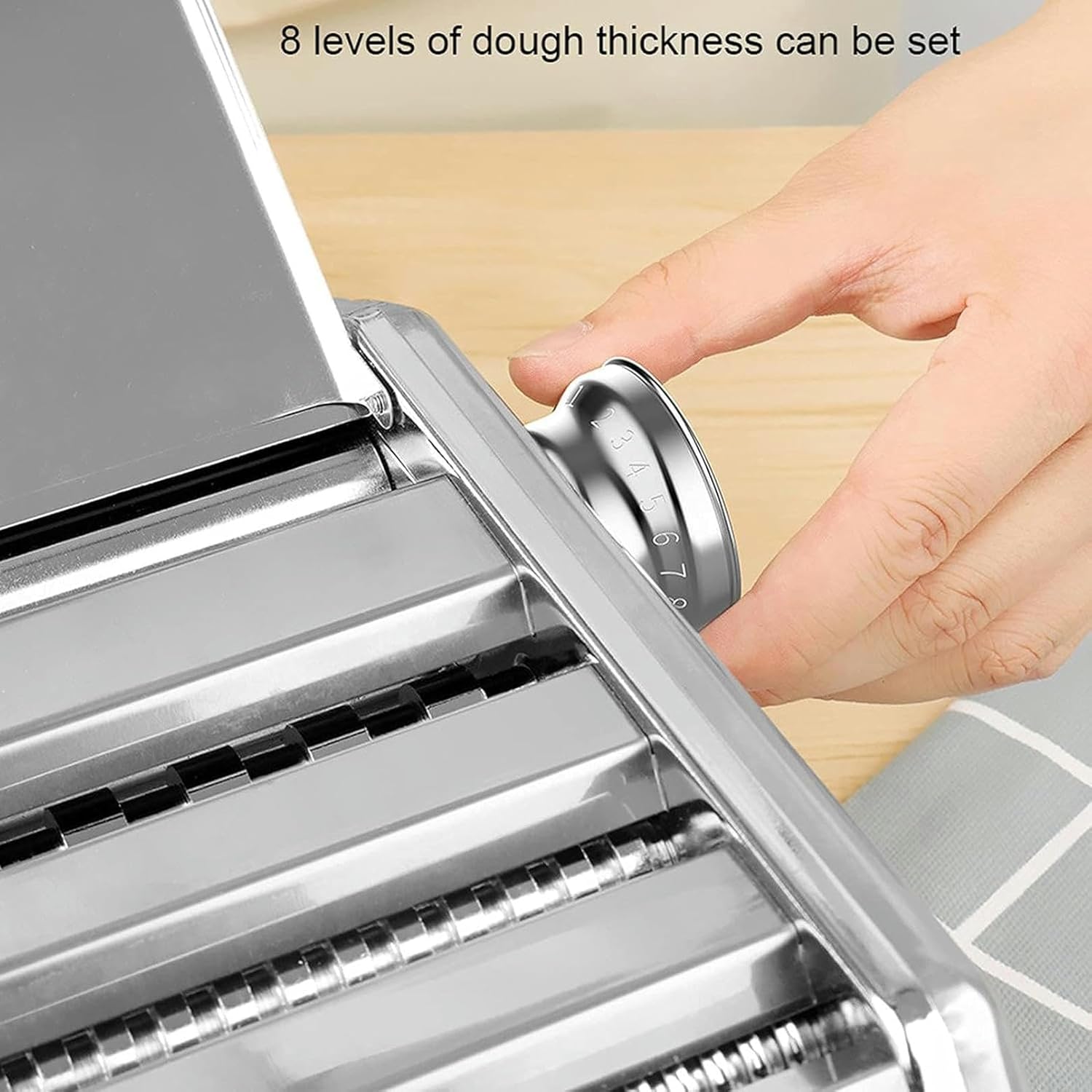 The pasta attachments for stand mixer is amazingly easy to use and highly versatile, making it possible to prepare fresh home-made pasta in just a few minutes!Specification Kitchen pasta cutter Material: stainless steel Thickness of dough: 0.5mm-2.5mm Feature: Press dough, cut noodlesHigh Quality This kitchen mixer machine, adopting first-rate stainless steel material, is wear-resistant and uneasy to get rusty. Stable Table Clamp Stable and convenient fixed design, Firmly attach the machine with the table clamp to a table or kitchen surface. Removable Hand Crank Ergonomic treatment on handle, anti-skid and comfortable to grip.Package Included: 1 x Pasta Making Machine 1 x Hand Crank 1 x ClampNOTE: 1. There will be some adhesive paper and grease residue on the cover, which will be produced by mechanical production, but will not affect the use. 2. Every machine must be tested with dough, and it will have a little flour, which is the most direct and effective way to check the product yield. 3. Any rice noodle machine will have lubricating o